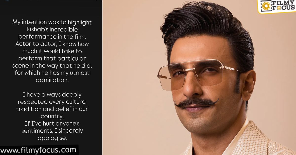 వివాదం వేడెక్కుతున్న తరుణంలో రణ్ వీర్ సింగ్ ఈ విషయంపై స్పందిస్తూ ఇన్స్టాగ్రాంలో క్షమాపణలు తెలిపారు. “కాంతారలో రిషబ్ చేసిన అద్భుతమైన నటనను హైలైట్ చేయడమే నా ఉద్దేశం. అలాంటి సీన్ను చేయడానికి ఎంత శ్రమ పడాల్సి వస్తుందో ఒక నటుడిగా నాకు బాగా తెలుసు అని, ఏ సంస్కృతి, సంప్రదాయాన్ని నేను అవమానించను. ఎవరి మనోభావాలనైనా నొప్పించి ఉంటే హృదయపూర్వక క్షమాపణలు కోరుతున్నా” అని ఆయన పేర్కొన్నారు.