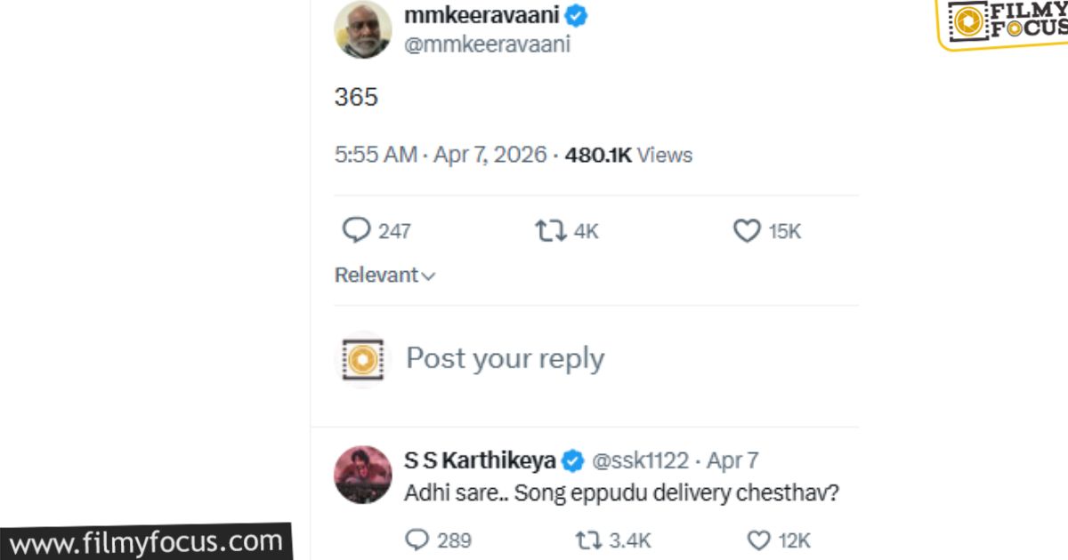మహేశ్బాబు – రాజమౌళి – ప్రియాంక చోప్రా – పృథ్వీరాజ్ సుకుమారన్ కాంబినేషన్లో రూపొందుతున్న సినిమా ‘వారణాసి’. ఈ సినిమాను వచ్చే ఏడాది ఏప్రిల్ 7న విడుదల చేస్తామని టీమ్ ఇప్పటికే అనౌన్స్ చేసింది. దానికి 365 డేస్ కౌంట్డౌన్ను కూడా స్టార్ట్ చేశారు. ఆ సినిమా సంగీత దర్శకుడు కీరవాణి ‘365’ అంటూ పోస్ట్ పెట్టారు. ఆ తర్వాత ఆ సినిమా నిర్మాతల్లో ఒకరైన కార్తికేయ స్పందిస్తూ.. ‘‘అది సరే.. పాట ఎప్పుడు డెలివరీ చేస్తారు’’ అని అడిగారు. దానికి ‘సెట్ వేస్తున్నారంటగా.. డైరెక్టర్ హ్యాపీ ఆ..!’ అంటూ ‘పోకిరి’ స్టైల్లో ఈ సంభాషణ జరిగింది.
